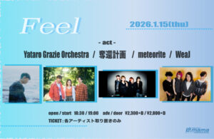 Yataro Grazie Orchestra / 奪還計画 / meteorite / WeaJ OPEN/START 18:30/19:00ADV/DOOR ¥2,300+D/¥2,800+D チケット:アーティスト […]