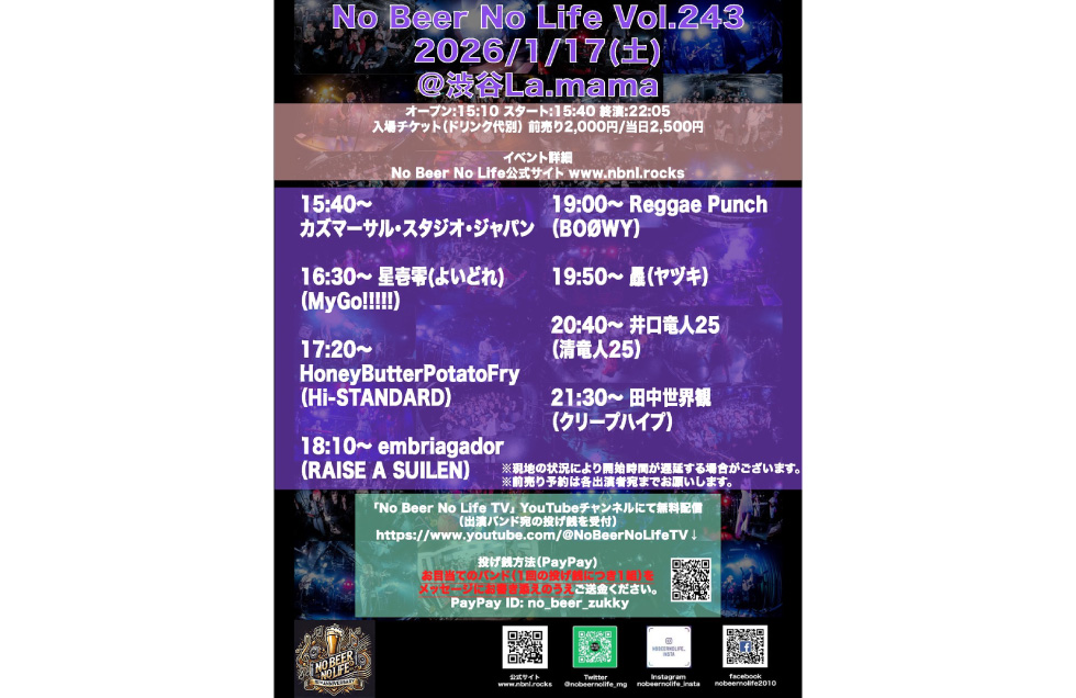 1/17 カズマーサル・スタジオ・ジャパン / 星壱零(よいどれ) / HoneyButterPotatoFry / embriagador / Reggae Punch / 驫(ヤヅキ)/ 井口竜人25 / 田中世界観